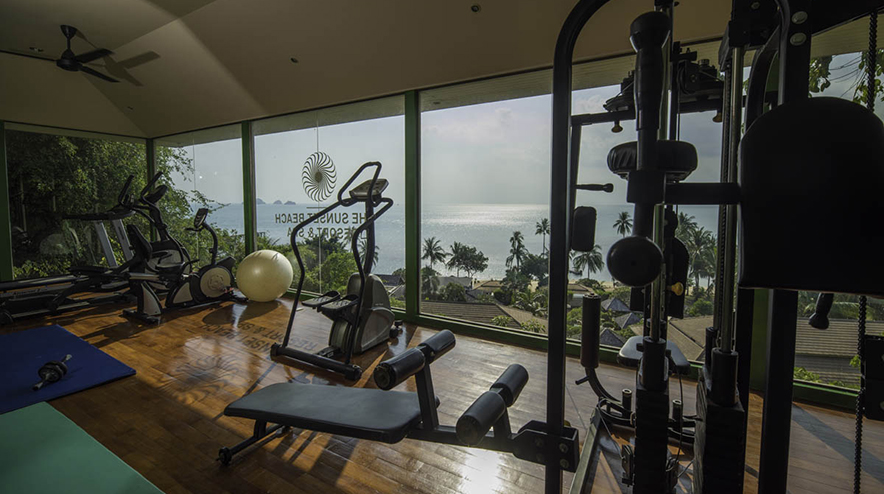 Enjoy a work-out with a lovely seaview at the Sunset Gym !