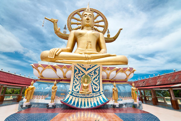 Wat Phra Yai is a more than 12-meter tall Buddha statue, first built in 1972. It is located on a small island but today connected with main land with a bridge.
